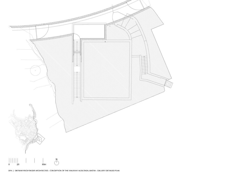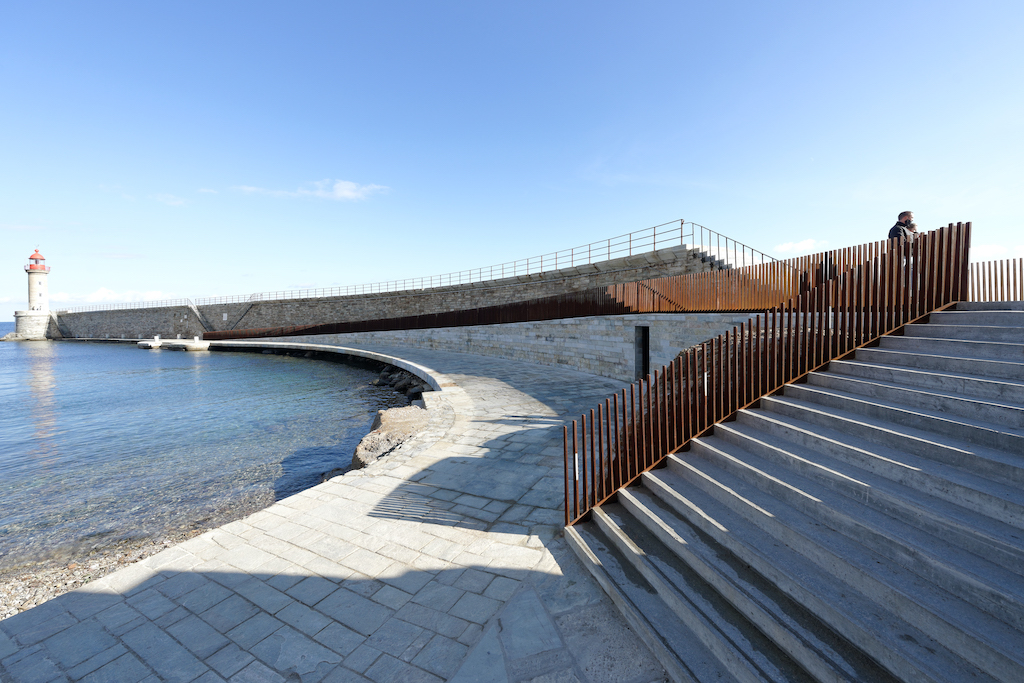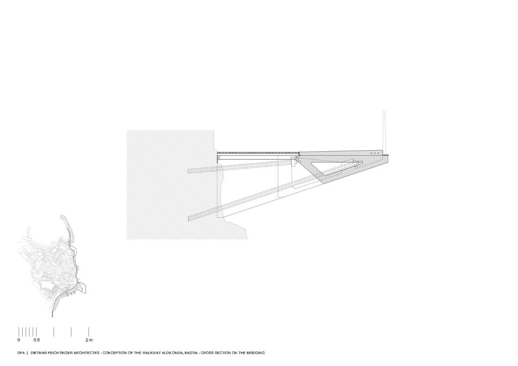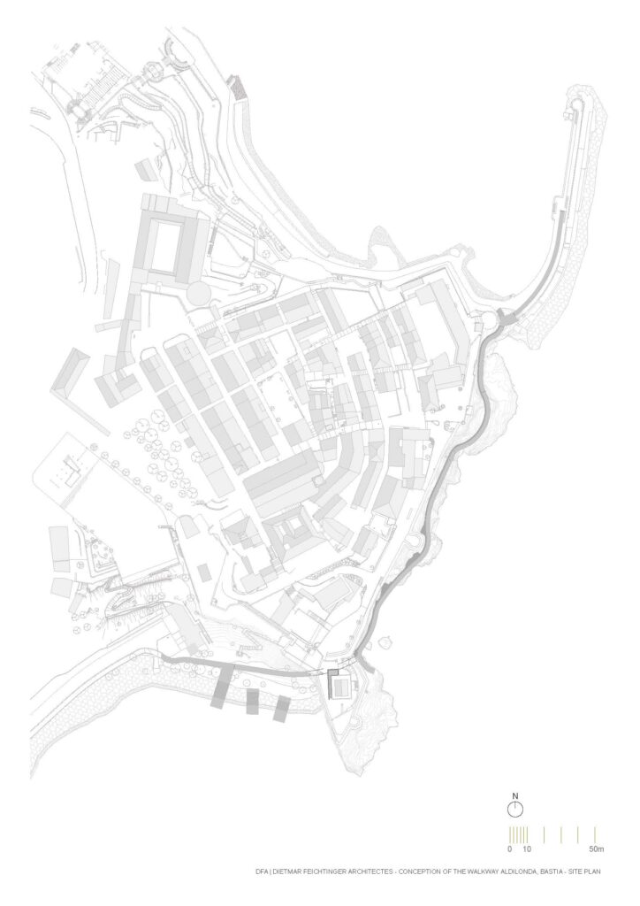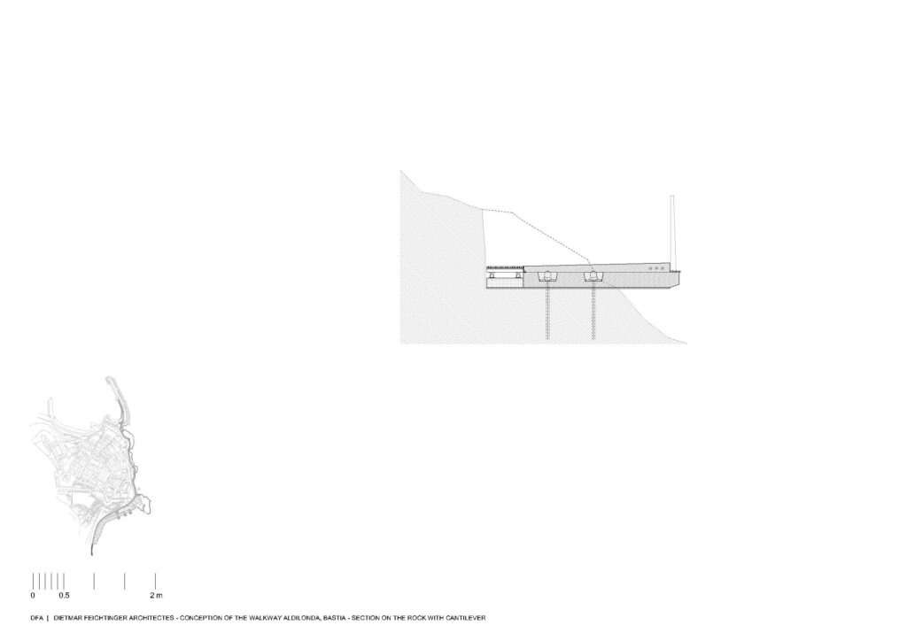 Em Bastia, na Córsega, França, a equipa de arquitectos da Dietmar Feichtinger liderou e coordenou, com um parceiro local, o arquitecto Buzzo Spinelli, a In Situ – paisagem e urbanismo – e SBP Bet, uma empresa de engenharia, a construção deste passeio marítimo, nomeado Aldilonda. A obra, encomendada pela câmara municipal de Bastia, e vencedora de concurso público, começou a ser planeada no final de 2017, tendo sido efectuadas análises a regulamentos e a regras relativas a impactos ambientais. Juntou-se ainda a avaliação de técnicas de construção na orla marítima bem como cálculos relacionados com as dinâmicas do mar, parcerias com duas firmas a GO VRD e a SAS Antoniotti + NGE Fondations.