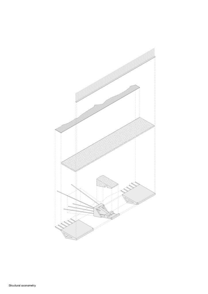 A plataforma está exposta à ondulação. Quando as ondas estão mais altas a água atravessa a grelha de aço, reduzindo assim o impacto da ondulação. Os necessários testes hidráulicos serviram para determinar a força do impacto da ondulação, numa simulação de 14 toneladas por metro quadrado. Foi dado um cuidado especial à forma de assegurar a durabilidade dos materiais. Em áreas mais expostas, houve um reforço de densidade numa ordem de 400 quilogramas por metro quadrado.
