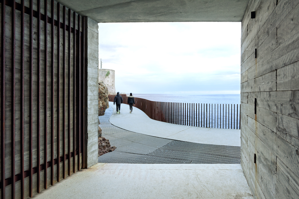 Fixa na escarpa rochosa, Aldilonda segue a orla costeira, serpenteando a cidadela e a 5 metros acima do nível do mar. As rochas em torno da cidadela eram apenas acessíveis em algumas áreas. Abriu-se um percurso seguro e proporcionou-se as boas vistas junto do mar. A grelha, em aço Corten, cuja o avermelhado complementa com as tonalidades da rocha ou contrasta com o betão. O perfil da grelha permite uma agradável transparência, fornecendo a desejada segurança e oferecendo uma experiência sensorial mais rica.